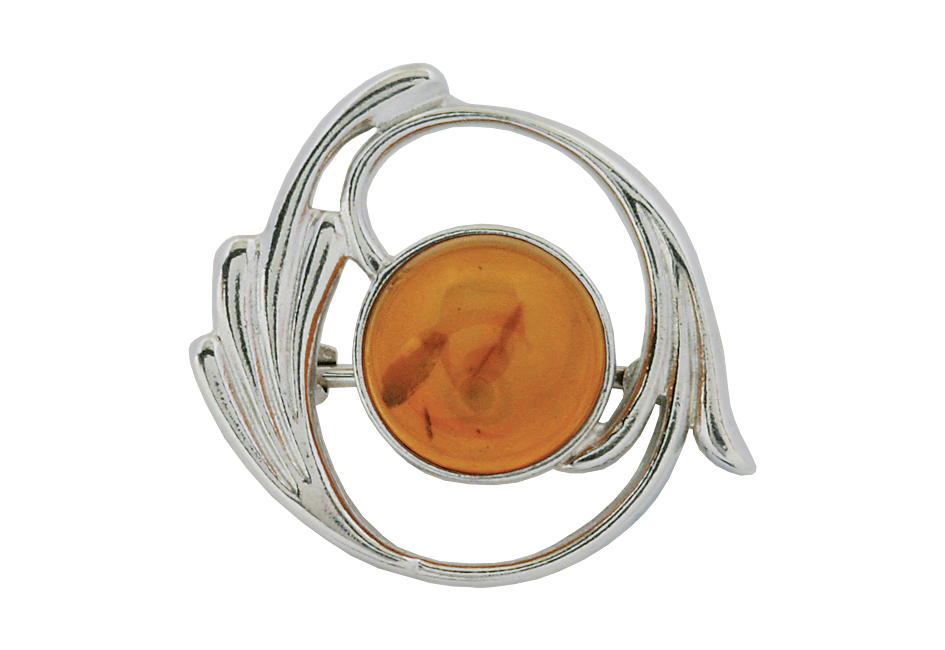 Брошь серебряная, камень Янтарь, артикул:85160010