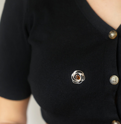 Брошь серебряная, камень Янтарь, артикул:85160023 (5,13)