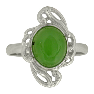 Кольцо серебряное, камень Нефрит, артикул:81800615 (2,76;18,5)