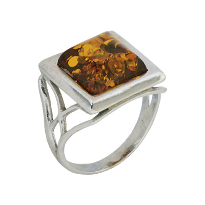 Кольцо серебряное, камень Янтарь, артикул:81132087 (4,08;18,5)