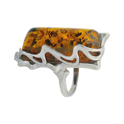 Кольцо серебряное, камень Янтарь, артикул:81160030 (4,57;17)