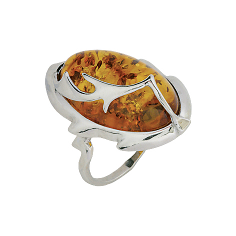 Кольцо серебряное, камень Янтарь, артикул:81160104 (5,39;17)