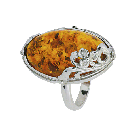 Кольцо серебряное, камень Янтарь, артикул:81160503 (4,57;18)