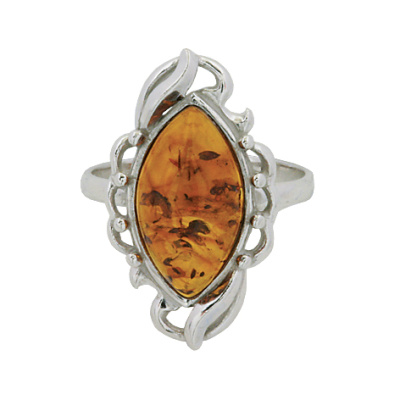 Кольцо серебряное, камень Янтарь, артикул:81160614 (2,93;17,5)