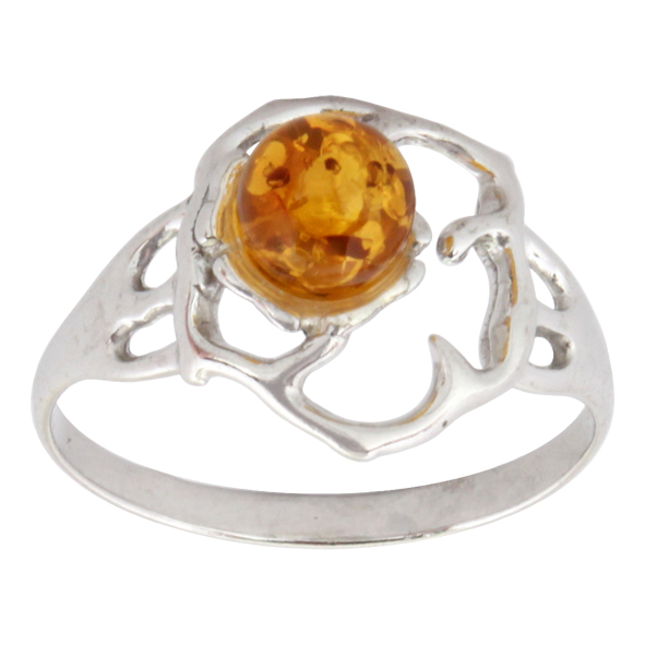 Кольцо серебряное, камень Янтарь, артикул:81160661 (2,15;16)