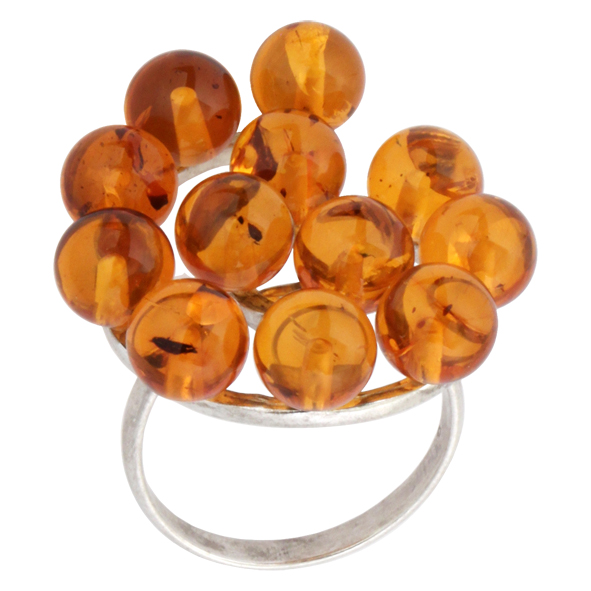 Кольцо серебряное, камень Янтарь, артикул:81160696 (6,26;16,5)