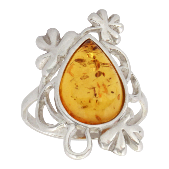 Кольцо серебряное, камень Янтарь, артикул:81160942 (3,18;17)