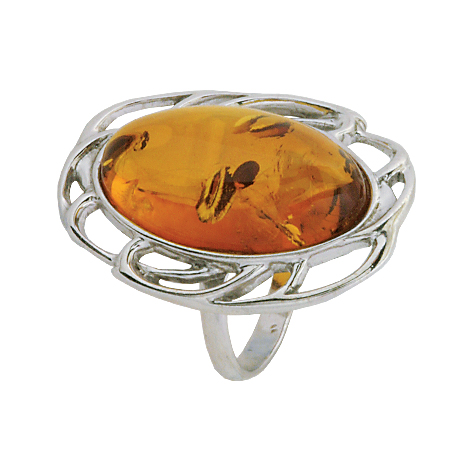 Кольцо серебряное, камень Янтарь, артикул:81160950 (4,99;18,5)
