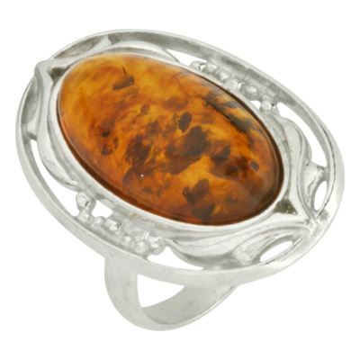 Кольцо серебряное, камень Янтарь, артикул:81162007 (5,16;17)