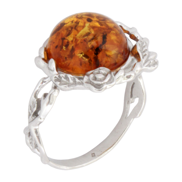 Кольцо серебряное, камень Янтарь, артикул:81162019 (4,49;18)