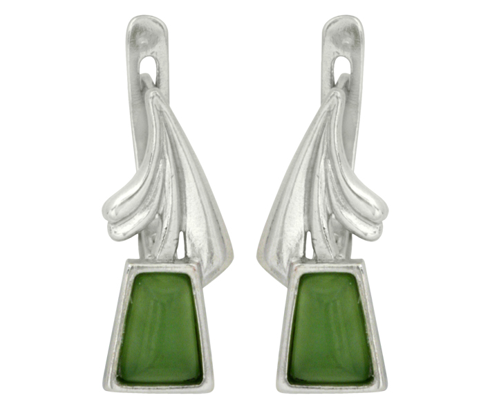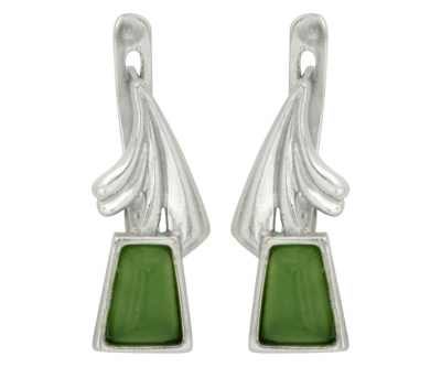 Серьги серебряные, камень Нефрит, артикул:82800032