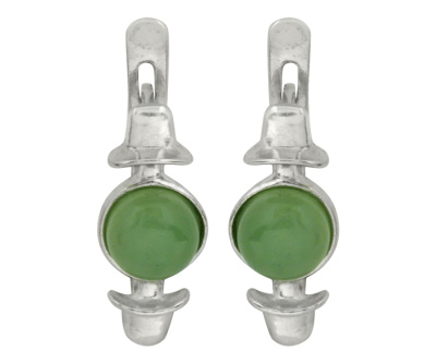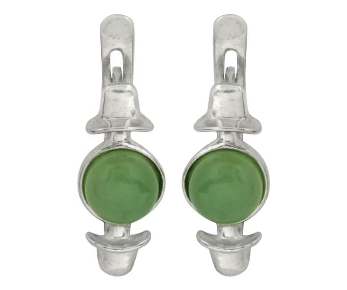 Серьги серебряные, камень Нефрит, артикул:82800075 (2,91)