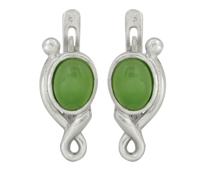 Серьги серебряные, камень Нефрит, артикул:82800119 (3,18)