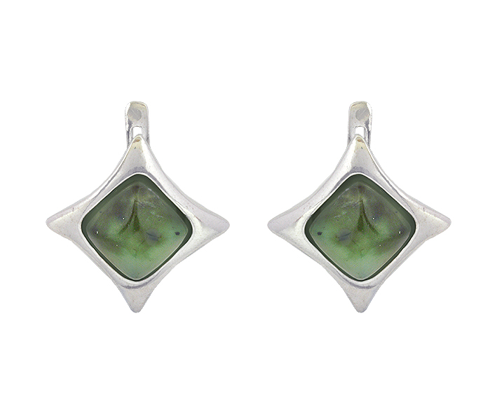 Серьги серебряные, камень Нефрит, артикул:82800586 (6,62)