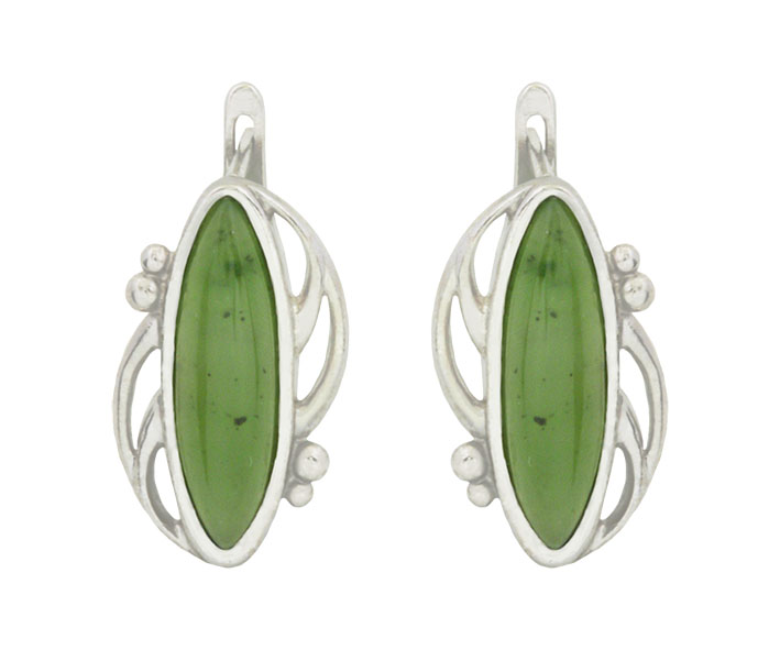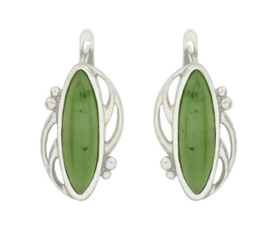 Серьги серебряные, камень Нефрит, артикул:82800901