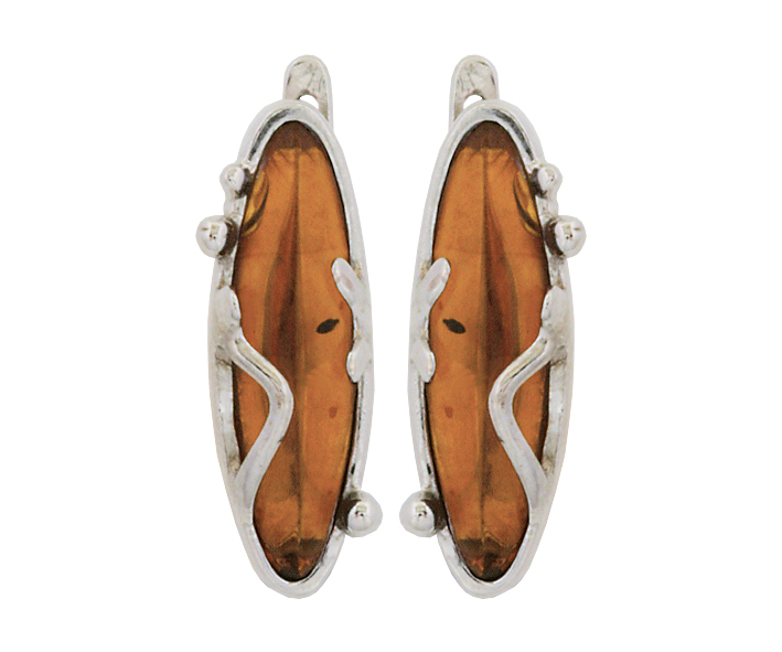 Серьги серебряные, камень Янтарь, артикул:82130001