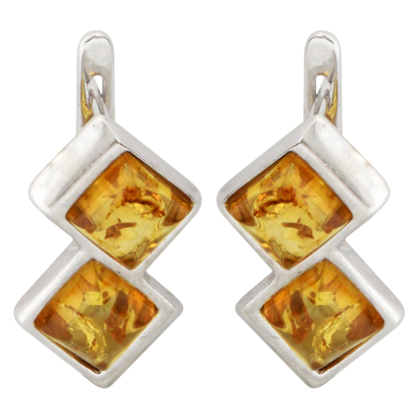 Серьги серебряные, камень Янтарь, артикул:82130048