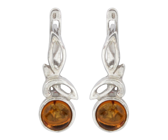 Серьги серебряные, камень Янтарь, артикул:82130057