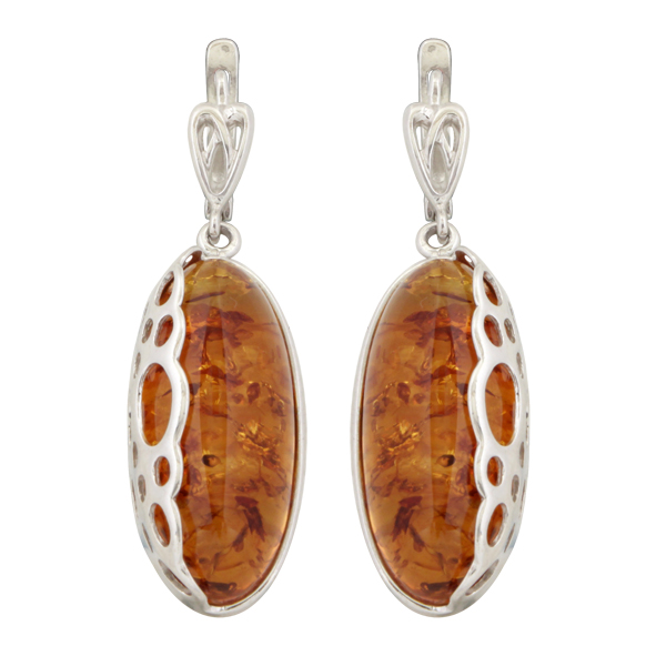 Серьги серебряные, камень Янтарь, артикул:82130107 (9,82)