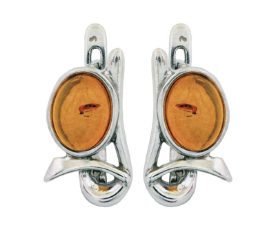 Серьги серебряные, камень Янтарь, артикул:82130118