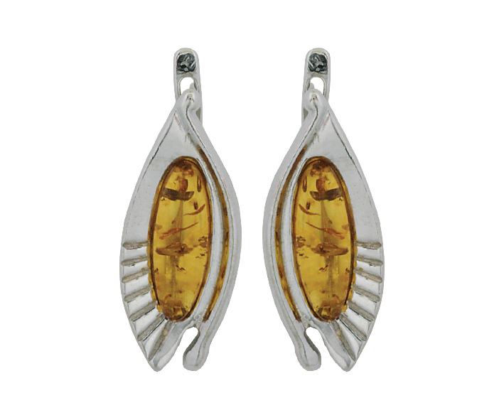 Серьги серебряные, камень Янтарь, артикул:82130134 (4,85)