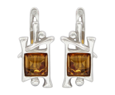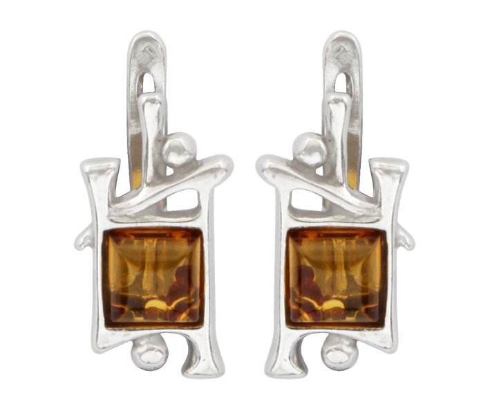 Серьги серебряные, камень Янтарь, артикул:82130170 (3,39)