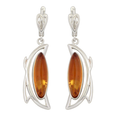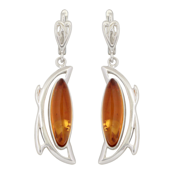 Серьги серебряные, камень Янтарь, артикул:82130225 (5,68)