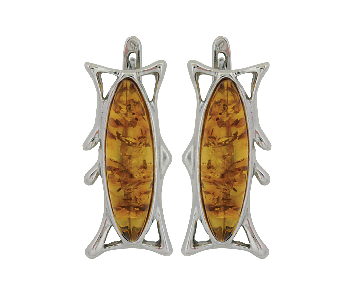 Серьги серебряные, камень Янтарь, артикул:82130253 (4,73)