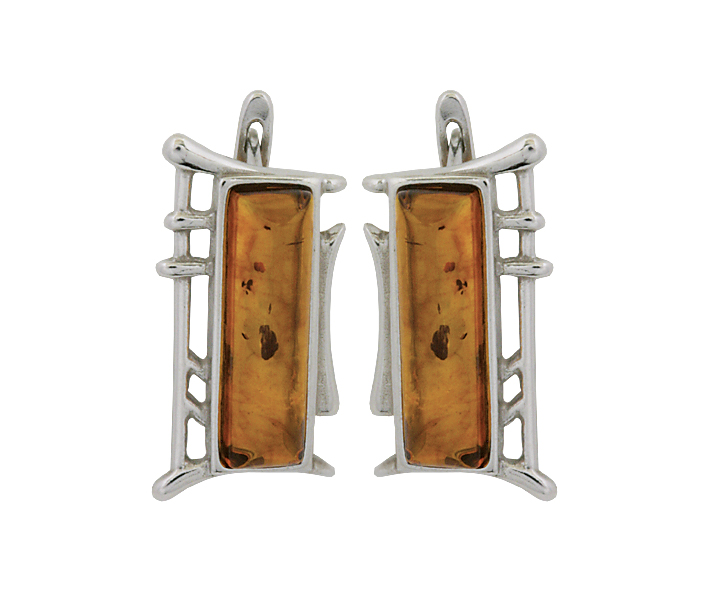 Серьги серебряные, камень Янтарь, артикул:82130468 (4,91)