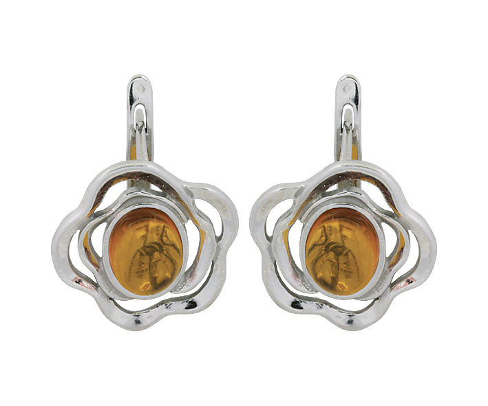 Серьги серебряные, камень Янтарь, артикул:82132031 (4,08)