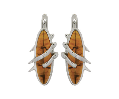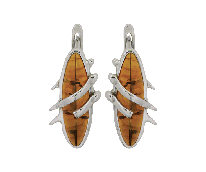 Серьги серебряные, камень Янтарь, артикул:82160018 (4,4)