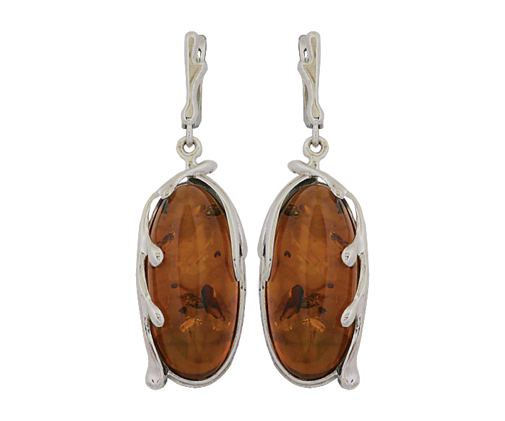 Серьги серебряные, камень Янтарь, артикул:82160101 (10,29)