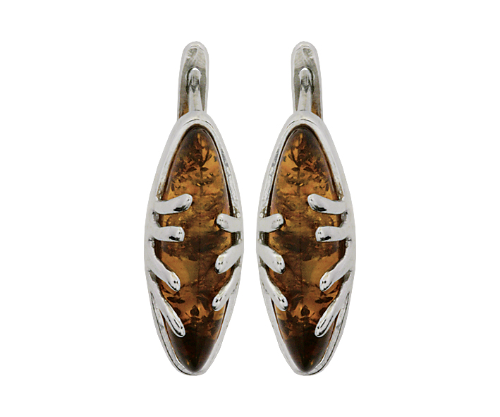 Серьги серебряные, камень Янтарь, артикул:82160462