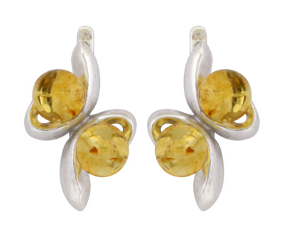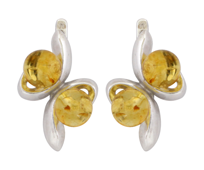 Серьги серебряные, камень Янтарь, артикул:82160648