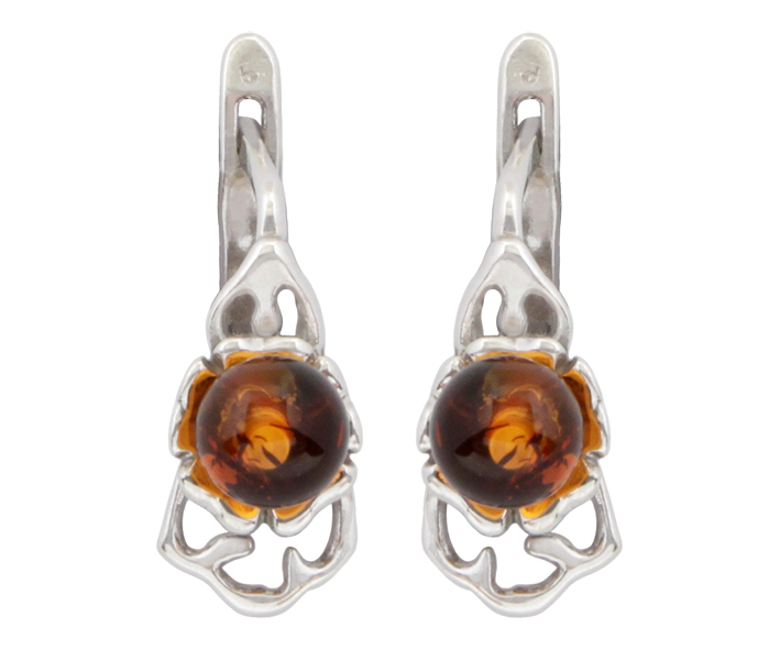Серьги серебряные, камень Янтарь, артикул:82160661 (2,99)