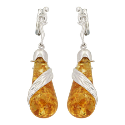 Серьги серебряные, камень Янтарь, артикул:82160854 (9,37)