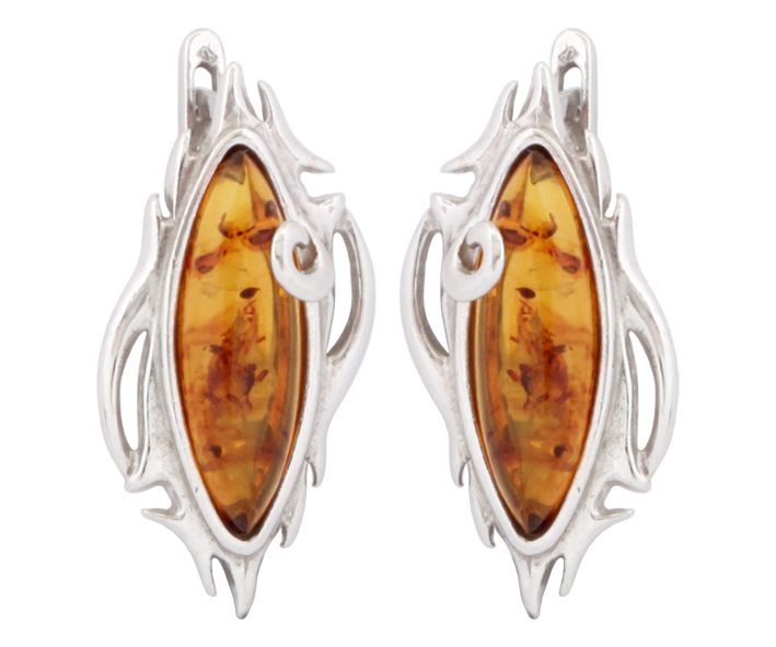 Серьги серебряные, камень Янтарь, артикул:82160945 (4,26)