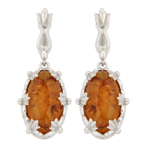 Серьги серебряные, камень Янтарь, артикул:82162057 (8,06)