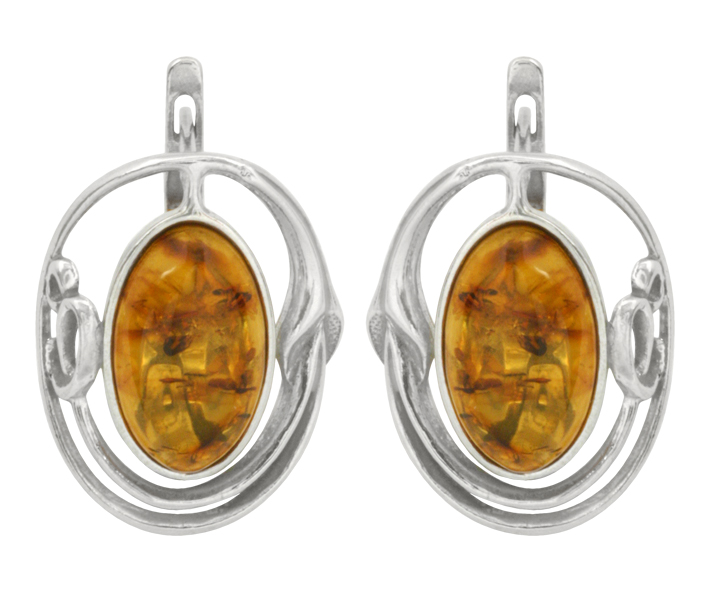Серьги серебряные, камень Янтарь, артикул:82162065 (6,1)
