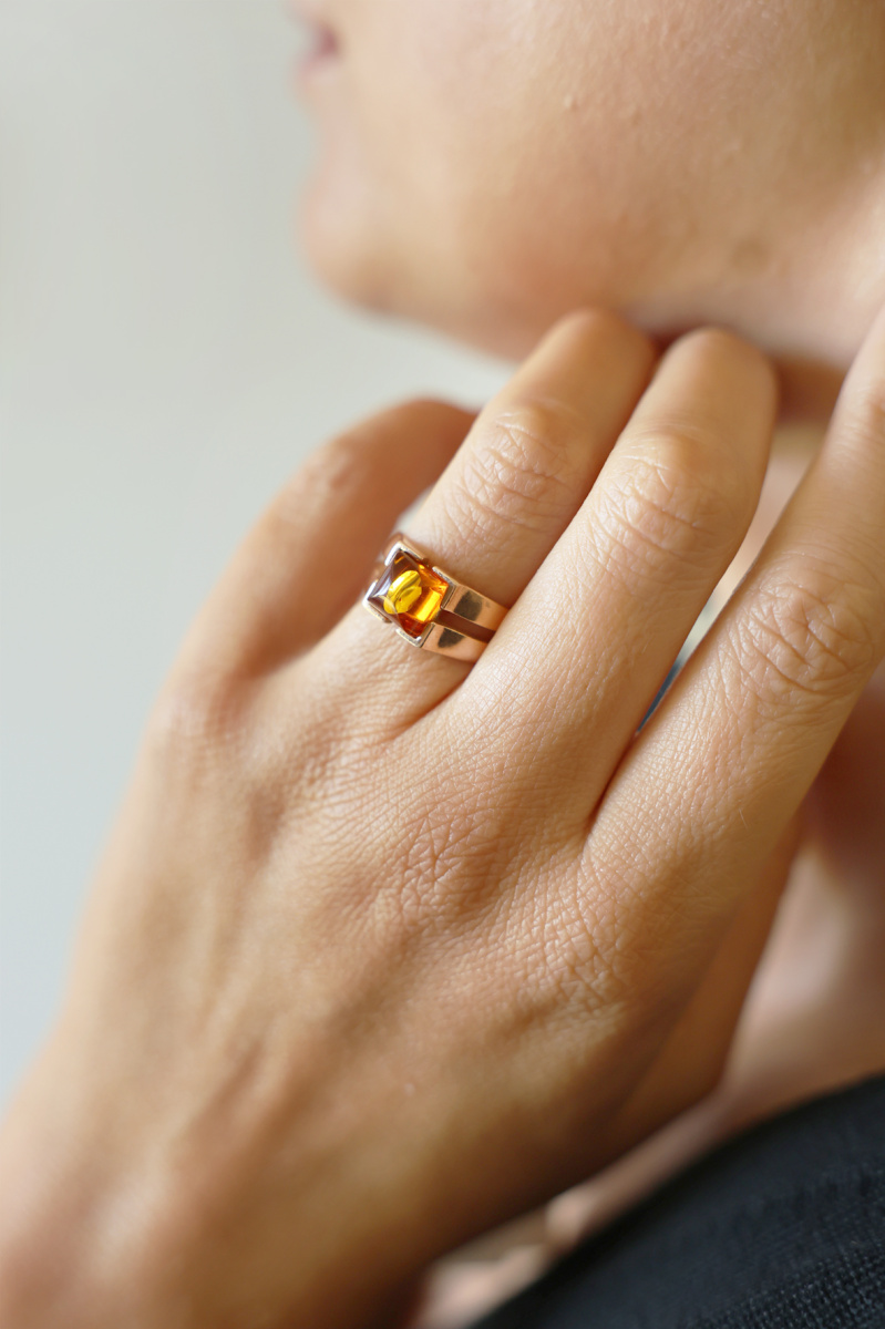 Кольцо серебряное, камень Янтарь, артикул:51160037 (4,14;17)
