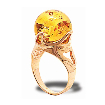 Кольцо серебряное, камень Янтарь, артикул:51160155 (5,78;17,5)